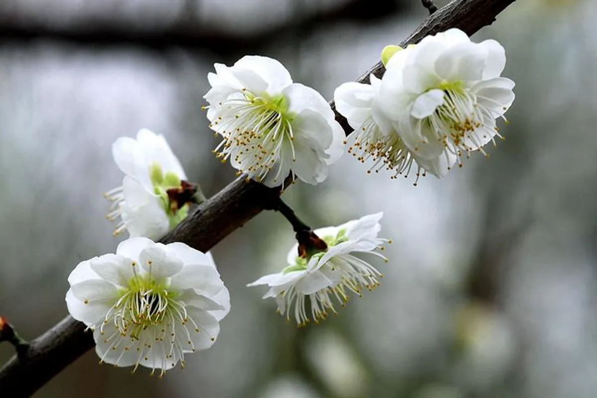 The Green Calyx Plum, commonly known as the Green Plum, is named for its green calyx and white flowers, and greenish twigs. It belongs to the true plum species in the plum flower classification system, specifically the straight branch plum class of the green calyx type. It is a standout in the plum blossom varieties.