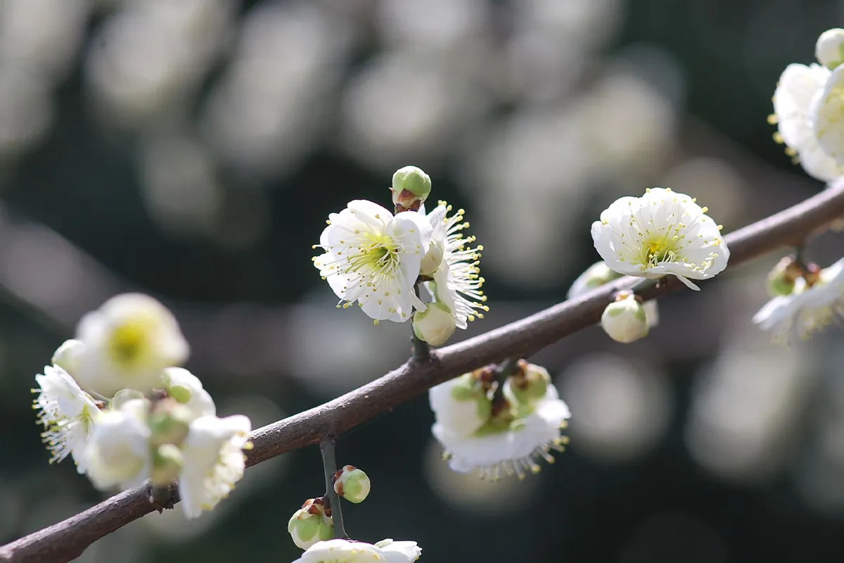 Shape pruning of outdoor planted plum blossoms can be done within 20 days after blooming. Maintain a natural tree shape as the main form, cutting off crossed branches, upright branches, dead branches, and overly dense branches.